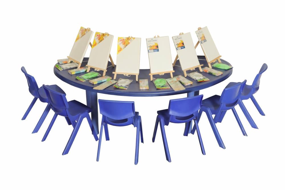 طاولة للاطفال مخصصة للعب تعتبر خياراً مثاليًا لأنها تجمع بين الأمان والراحة والجاذبية في التصميم فهي تحتاج إلى مساحة أقل مقارنةً بالطاولات الكبيرة أو المستطيلة، مما يجعلها مثالية للغرف الصغيرة أو الأماكن المحدودة